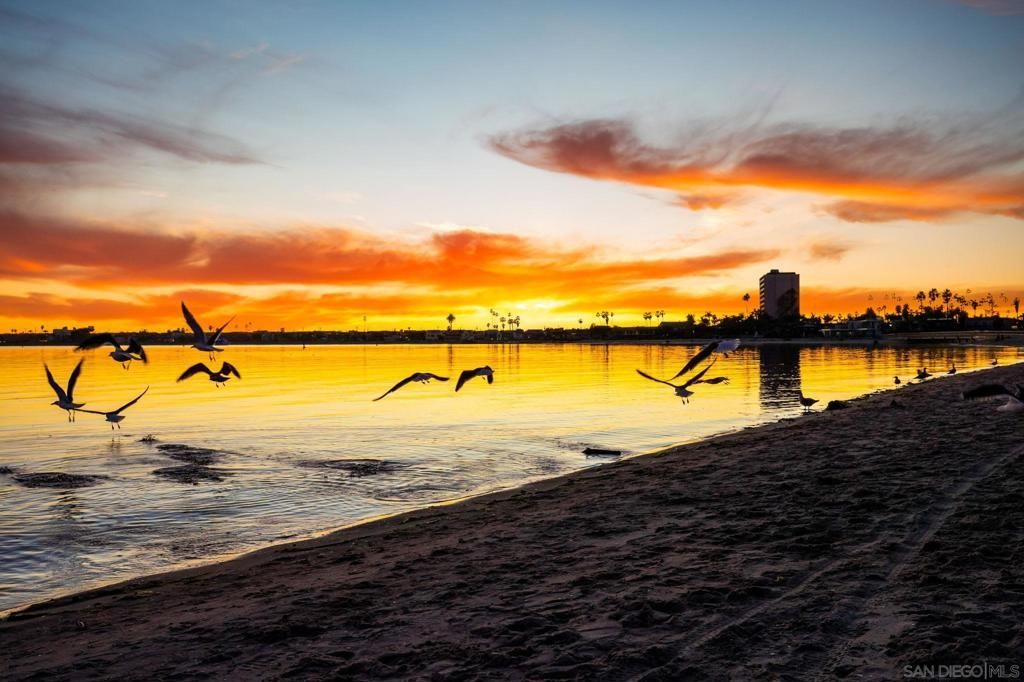 SHORT-, MID- & LONG-TERM FURNISHED RENTAL ? Sunset on Sail Bay: 2BR Waterfront Condo Wake up to breathtaking bay views in this beautifully renovated, top-floor waterfront condo located directly on Sail Bay. This light-filled home offers an open-concept layout, private deck, and front-row access to the sand, delivering the perfect blend of comfort, style, and location. The living room, dining area, and kitchen flow seamlessly together, framed by expansive windows and sliding doors opening to the bay-facing deck?ideal for morning coffee, sunset wine, or watching beach volleyball, paddleboarders, and cyclists along the bay path. The condo is thoughtfully furnished, exceptionally clean, and fully equipped for comfortable living. A stand-up desk is positioned to take full advantage of the water views, making remote work both productive and inspiring. The primary bedroom features a king bed, generous closet space, and an en-suite bathroom, while the second bedroom offers two twin beds with easy access to a second full bath. Building amenities include a bayfront swimming pool, spa, expansive lounge and tanning areas overlooking the water, shared BBQ on the pool deck, elevator access, and underground garage parking. Guests can step directly from the building onto the sandy shores of Mission Bay and enjoy true waterfront living in the heart of Pacific Beach. Sleeping setup (max 4): King bed, two Twin beds, two full bathrooms. Rates vary by season and length of stay. Published amounts are estimates; final pricing, fees, and availability are subject to change until a signed agreement.