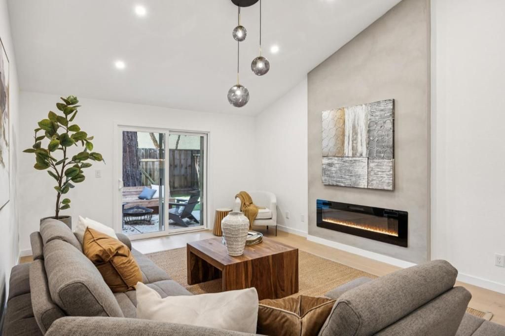 Stunning Rare Remodeled Single Story Townhouse. Located West of 101 just off of University Ave, offers the perfect blend of modern design and functionality with easy access to all that Palo Alto has to offer. This property has been completely reimagined and remodeled and with plans and permits. Enter into a cozy great room with stunning white oak flooring, soaring ceilings and a custom fireplace. A beautifully landscaped backyard opens up from the great room, inviting seamless indoor-outdoor California-style living. The modern chefs kitchen is a showstopper, boasting quartz countertops, stunning backsplash and custom LED lighting, with a large island and Samsung Bespoke appliances including a refrigerator with hidden beverage center. Sleek modern cabinetry provides ample storage for culinary enthusiasts and entertainers alike, with a spacious dining area illuminated by a gleaming designer lighting. The primary suite is a serene retreat with a spa-like bathroom and direct access to the backyard. A finished garage with a laundry area provides additional functionality. This lovely gated complex also offers a beautiful private pool and hot tub in a park-like setting. Dont miss this rare opportunity to own a truly turnkey modern property near downtown Palo Alto.