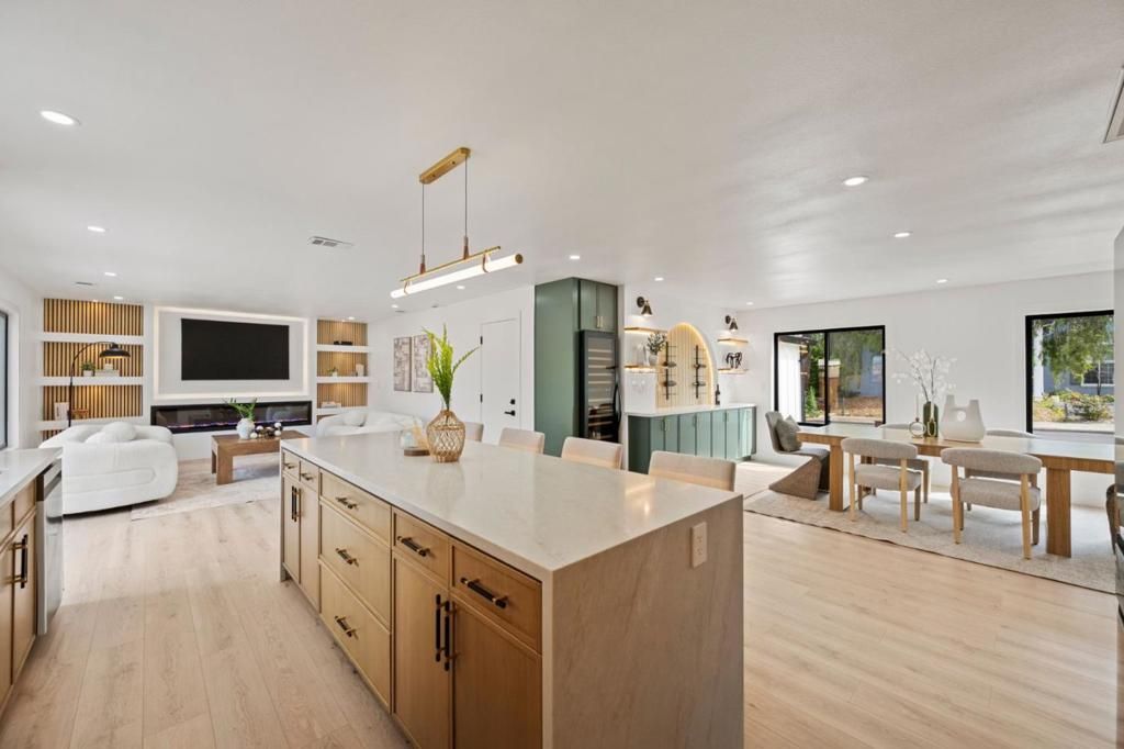 Set on a desirable corner lot, this inviting 4-bedroom, 2-bath Cupertino home has been thoughtfully updated with both function and comfort in mind. Clean, low-maintenance landscaping gives the home a well-kept feel from the start. Inside, recessed lighting and an open layout create a bright, natural flow throughout the space. The kitchen centers around an island with modern pendant lighting, complemented by stainless steel appliances and soft-close cabinetry. A cozy electric fireplace and a spacious bar area add a nice touch of character without feeling overdone. Smart features like a Nest Doorbell and Nest Thermostat bring everyday convenience. The bathrooms are finished with a clean, modern look, complete with LED mirrors and subtle designer touches. The backyard is set up for both relaxing and entertaining, featuring a gazebo, swing set, fire pit area, and outdoor lighting designed to be enjoyed without the extra upkeep. All of this in a well-located Cupertino neighborhood, close to top-rated schools, parks, shopping, and nearby tech campuses.