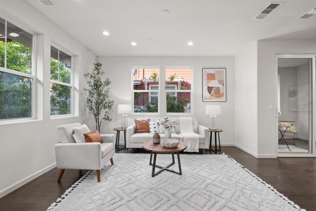 *Bright, contemporary living meets a thoughtfully upgraded interior in this stylish home nestled within the desirable Pepper Lane community. *Open-concept living, dining, and kitchen areas flow seamlessly for daily living and entertaining. The kitchen features granite countertops, gas cooktop, pantry storage, and a breakfast bar. *Quality builder upgrades include updated main-floor flooring, tile in key areas, and upgraded carpeting in bedrooms and stairs. Both bedrooms have custom closet cabinetry, and the primary suite offers a well-appointed en-suite with dual sinks and refined finishes. *Additional features: in-house laundry, central heating & A/C, double-pane windows, ceiling insulation, thermostat controller, and whole-house water softener. *Attached garage with custom storage cabinetry and a 110V 20-amp outlet supports storage and future EV needs. *Set within a well-maintained community, residents enjoy landscaped greenbelts, a clubhouse, playgrounds, BBQ areas, and outdoor gathering spaces. Conveniently located near parks, amenities, and top tech employers (Nvidia, Google, Apple, Supermicro), within the boundaries of Vinci Park Elementary (9/10), Piedmont Middle (8/10), and Independence High (8/10) per GreatSchools.