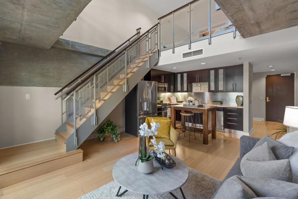 This chic 1-bedroom loft-style home offers a sophisticated blend of volume, light, and modern design. With soaring ceilings, oversized windows, and an open-concept layout, the residence feels both airy and inviting. A sleek kitchen with contemporary finishes opens to the main living and dining area, creating an ideal setting for both everyday living and entertaining. The loft-style bedroom enhances the homes architectural character while offering a stylish sense of separation and privacy. Located in a full-service doorman building, residents enjoy access to a full gym, a gorgeous landscaped courtyard, a community library, and more. The home also features central A/C, a rare luxury in San Francisco, as well as the convenience of an in-unit washer and dryer, and dedicated parking in secured garage. Perfectly situated in South Beach, this home places you close to the waterfront, renowned restaurants, shopping, and the best of city living.